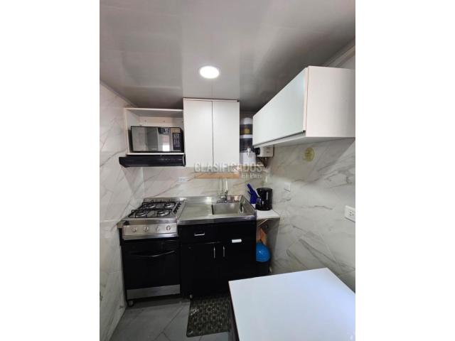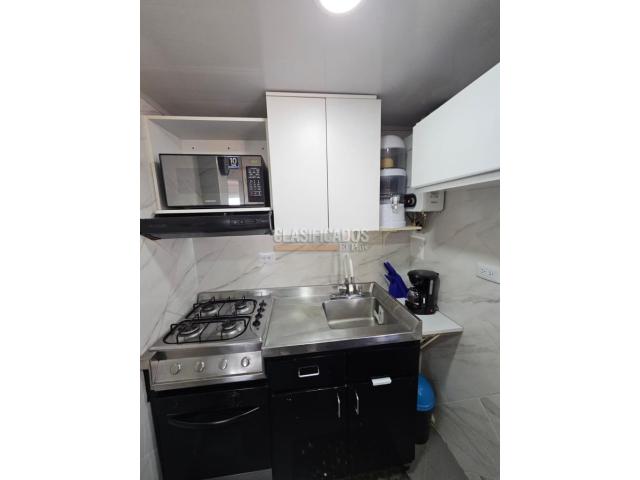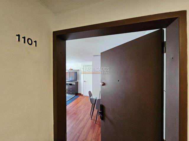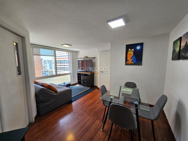 código 124723 Se arrienda aparta estudio amoblado con vista exterior Moderno y acogedor aparta estudio totalmente amoblado, con excelente iluminación natural y vista al occidente. Ideal para quienes buscan comodidad y practicidad en un solo espacio. Características: 1 habitación con vista exterior 1 baño con calentador a gas Sala – comedor Cocina integral completamente equipada Lavadora y secadora Nevera Horno a gas Microondas Mueble tipo cama auxiliar El edificio cuenta con ascensor y recepción con vigilancia 24 horas, brindando seguridad y tranquilidad. Código interno: A124723