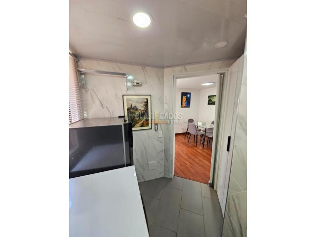 código 124723 Se arrienda aparta estudio amoblado con vista exterior Moderno y acogedor aparta estudio totalmente amoblado, con excelente iluminación natural y vista al occidente. Ideal para quienes buscan comodidad y practicidad en un solo espacio. Características: 1 habitación con vista exterior 1 baño con calentador a gas Sala – comedor Cocina integral completamente equipada Lavadora y secadora Nevera Horno a gas Microondas Mueble tipo cama auxiliar El edificio cuenta con ascensor y recepción con vigilancia 24 horas, brindando seguridad y tranquilidad. Código interno: A124723