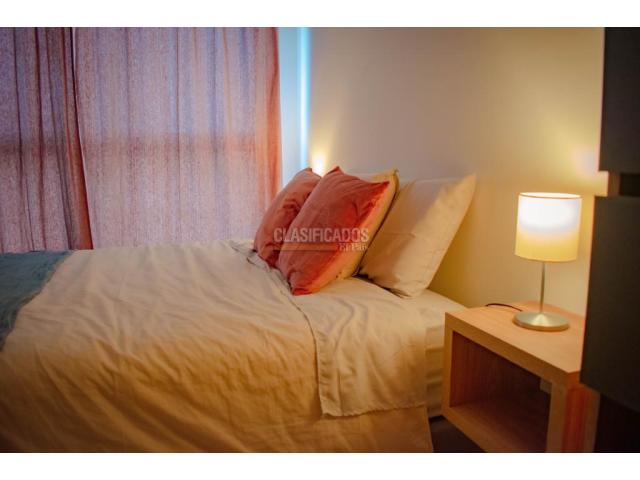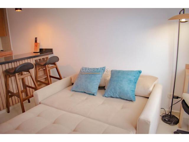 CODIGO WEB 117420 Se arrienda hermoso aparta estudio amoblado, edificio con ascensor y muy buenos acabados, C.R Miro Living del barrio el Refugio, cuenta con amplia sala comedor amoblada para brindarte una comodidad y confort, gran ventanal que brinda inmejorable vista exterior, mueble central con Tv, cocina integral abierta, estufa eléctrica de dos boquillas, barra de desayunos con 2 sillas, habitación con amplia cama, mesas de noche, amplio Vestier, aire acondicionado, zona de aseo con lavadora y pequeño lavadero, baño con división en vidrio templado, gran ventilación e iluminación natural y parqueado comunitario. En Miro Living tendrás un ambiente seguro, espacios de entretenimiento y para ejercitarte, como: piscina, zonas VIP, salas coworking, salón de juegos, lavandería, terraza BBQ, recepción, Lobby para visitantes, vigilancia 24/7 y bahía de parqueo externa, cerca a centros comerciales, supermercados y calle 5. COD WEB 117420. Código interno: A117420