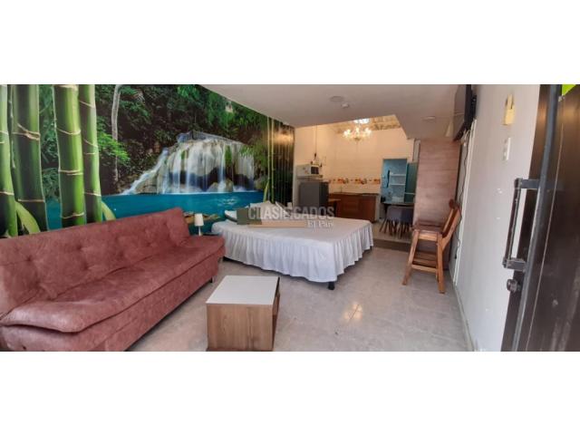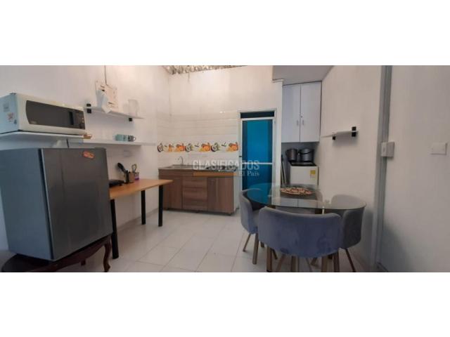 CODIGO WEB. 107192 Se alquila excelente aparta estudio Amoblado, muy bien ubicado, barrio Santa Ana, cerca a la autopista, calle 13, carrera 56, cerca a centro comerciales, y supermercados, este aparta estudio cómodo, cuenta con ante jardín el cual tiene mesa con sillas ideal para tardear con tu familia o amigos, internamente cuenta con aire acondicionado, lámparas de lujo, closet, un sillón con mesa auxiliar de centro, cama doble con buenos tendidos y cojines, amplio baño con ducha, zona de oficio con lavadora y un tendedero portátil, cocina semi integral equipada con horno microondas, nevera, utensilios para la cocina entre otros, zona de oficios, incluye servicio de acueducto, los otros servicios públicos( gas y energía) son aparte del canon. web: 107192 Código interno: A107192