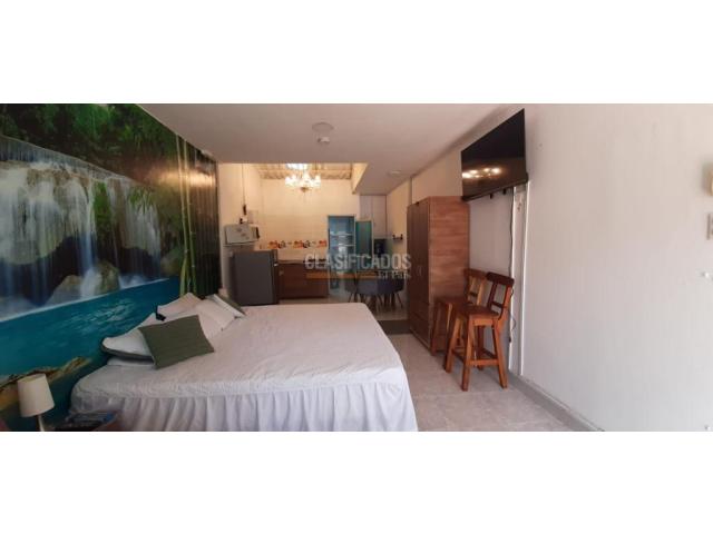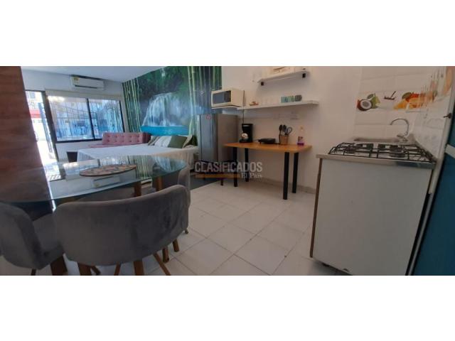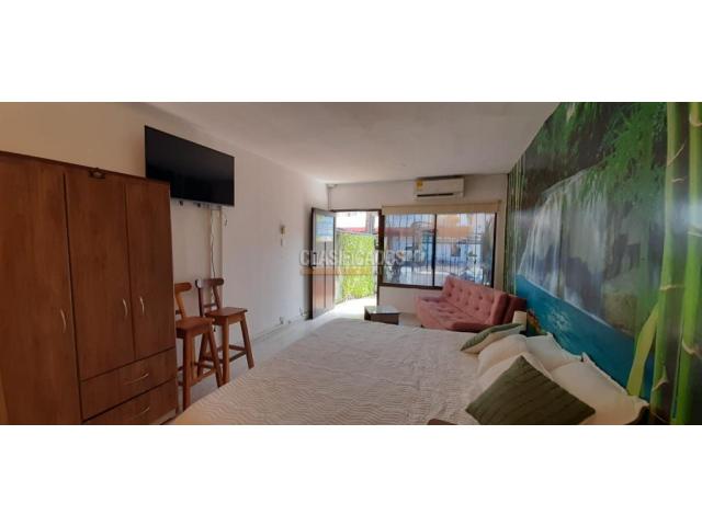 CODIGO WEB. 107192 Se alquila excelente aparta estudio Amoblado, muy bien ubicado, barrio Santa Ana, cerca a la autopista, calle 13, carrera 56, cerca a centro comerciales, y supermercados, este aparta estudio cómodo, cuenta con ante jardín el cual tiene mesa con sillas ideal para tardear con tu familia o amigos, internamente cuenta con aire acondicionado, lámparas de lujo, closet, un sillón con mesa auxiliar de centro, cama doble con buenos tendidos y cojines, amplio baño con ducha, zona de oficio con lavadora y un tendedero portátil, cocina semi integral equipada con horno microondas, nevera, utensilios para la cocina entre otros, zona de oficios, incluye servicio de acueducto, los otros servicios públicos( gas y energía) son aparte del canon. web: 107192 Código interno: A107192
