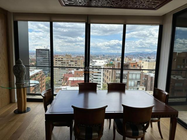 (116228 ) Se arrienda exclusivo Penthouse para estrenar en privilegiado sector de Chapinero, barrio Rosales. 230m2 y 50m2 de terraza BBQ y fogata a gas a control remoto. Cuenta con 3 habitaciones amplias con baño, cuarto de servicio, estudio, sala, comedor, cocina integral tipo americana, depósito y 3 garajes. El edificio cuenta con seguridad 24-7, ascensor y sistema se seguridad. Ubicado en un piso 8 en toda la planta del mismo, con vista a los cuatro puntos cardinales y a los jardines de la Embajada de los EEUU, además de una excelente iluminación natural. Localizado a 2 cuadras de la Carrera 7ma, 3 cuadras de la Circunvalar, a una cuadra del Club el Nogal y todas las embajadas a sus alrededores. Código interno: A116228