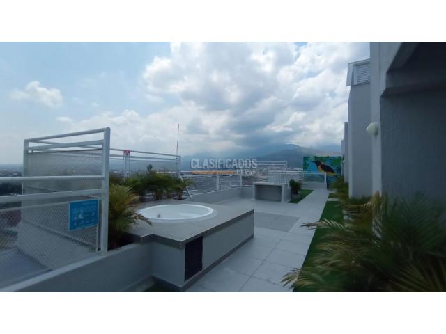 Apartamento en quinto piso, con 48 M², consta de sala-comedor, 2 alcobas con closet, alcoba principal con baño y baño soaicl, cocina integral a gas, zona de ropas con instalación de lavadora, calentador a gas. El conjunto cuenta con portería, citófono, recepción, salón social, ascensor, terraza comunitaria con vista panorámica de la ciudad, jacuzzi, garaje comunitario. Código interno: A4756