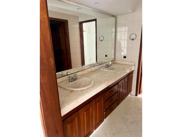 Apartamento en Alquiler en Santa Rosa del Oeste (junto a Santa Teresita)** Zona residencial exclusiva del Oeste de Cali, piso alto, excelente ventilación e iluminación natural. Área: 220 m² Distribución Interior • Sala amplia • Comedor independiente • Sala de estar (estar de TV) • 3 habitaciones (principal con balcón) • 4 baños • Cocina tradicional • Patio de ropas • Alcoba de servicio con baño • 2 parqueaderos Zonas Comunes del Edificio • Piscina • Salón social para eventos • Gimnasio Entrega inmediata CANON: $4.500.000 inc admon