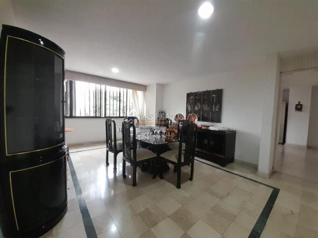 WEB 122428 Se alquila amplio apartamento en el barrio Santa Teresita, al oeste de la ciudad. El inmueble cuenta con cuatro habitaciones, cada una con clóset y baño privado, una sala–comedor muy amplia, sala auxiliar, cocina integral espaciosa y funcional, baño social, pasillo con clóset adicional, cuarto de servicio con su respectivo baño y zona de aseo independiente. El apartamento dispone de parqueadero privado #301 ubicado en el sótano. El edificio está en una excelente ubicación, sobre vía principal y con fácil acceso al transporte público, en un sector residencial tranquilo y de gran valorización. WEB 122428 Código interno: A122428