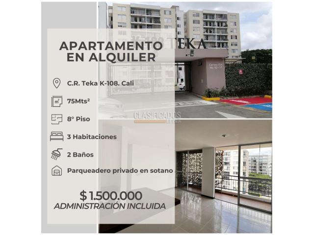¡EN ALQUILER! Lindo y amplio apartamento en octavo piso con ascensor, área de 75M², ubicado en el barrio Bochalema de la ciudad de Cali. El apartamento consta de: 3 habitaciones (todas con closet) 2 baños Cocina integral Sala comedor Zona de ropas Parqueadero privado en sotano. En zonas comunes: - Portería 24/7 - Salón social - Piscina para adultos y niños - Zona infantil - Zonas verdes
