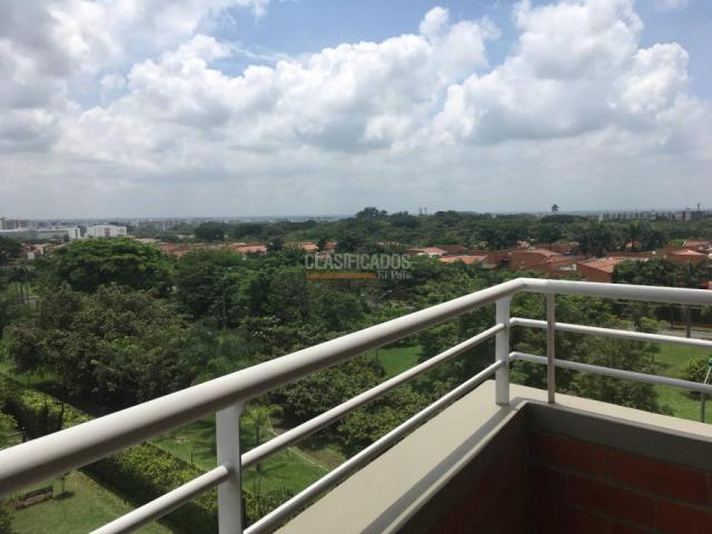 Código 75638 Se arrienda apartamento en 5 piso con ascensor en Ciudad Jardín. Es el último piso de la torre. El techo de la sala y la habitación principal son elevados. Tiene 3 habitaciones principal con vestier y baño, baño de habitaciones, baño social sin ducha y habitación de servicio. Tiene un área para ver televisión o estudio, cocina integral semi americana. Tiene dos balcones, uno en la sala-comedor y otro en la cocina. Está cerca al sendero ecológico. Tiene muy buena vista, está alejado de la avenida por lo que es más silencioso y le da el sol de la mañana, es muy fresco, pisos de porcelanato. La unidad tiene shut, planta eléctrica y tanques de agua. Cuando se va la energía la sala comedor, el estudio, la cocina y la alcoba principal continúan con energía de la planta eléctrica. Tiene sauna, piscina, salón social, zona de juegos infantiles. Parqueadero doble en línea #16 y depósito en el sótano #18. Cerca de las universidades como la Javeriana, colegio Berchmans. Código interno: A75638