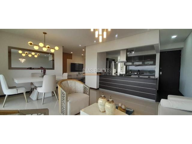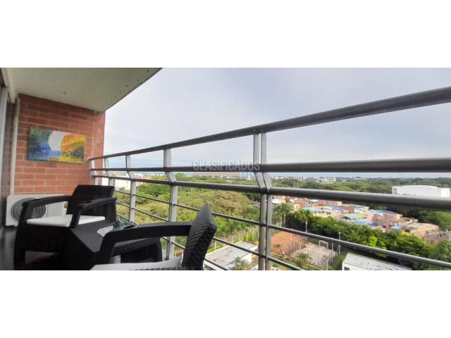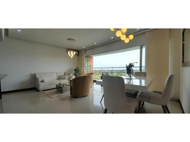 Cod Web 112352. Se Alquila excelente apartamento 12vo piso del Cr Terrazas de Cañas gordas totalmente amoblado, apartamento de lujo en excelente zona del sur de Cali Barrio Ciudad Jardín, cuenta con amplios y acogedores espacios en sala comedor con aire acondicionado y con gran ventanal que nos conduce a balcón donde disfrutaremos de hermosa vista panorámica, cocina enchapada en mármol equipada con campana y estufa, acabados de cocina en madera, zona TV, tres habitaciones dos de ellas con closet, una de ellas con aire acondicionado, la habitación principal con vestier y baño privado, un baño de habitaciones y otro social, zona de oficios, piso en porcelanato, calentador, vías de fácil acceso por la panamericana y por calle 100, zonas comerciales aledañas cercanas, centro comercial Jardín plaza y zonas de restaurantes y comercio. Además la unidad cuenta con piscina, salón social, GYM, salón de juegos, cancha deportiva, cancha de tenis, juegos infantiles, doble parqueadero en sótano # 2 Código interno: A112352