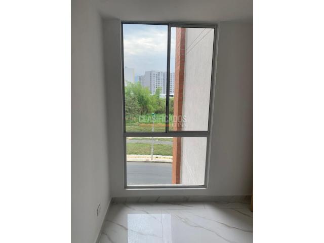 Arriendo hermoso Apartamento, 5 piso con ascensor , tiene lindos acabados , con vista exterior, Consta de 2 habitaciones con closets y la principal con baño y Vestier, estudio o tercera habitación, pisos modernos, , baño social, cocina integral con barra tipo americano adicional, diseño moderno, diseño de techo con descolgado , Zona de Oficios, la Unidad posee piscina para niños y adultos, juegos infantiles, Zona para animales, Salón Social Cubierto , vigilancia 24/7
