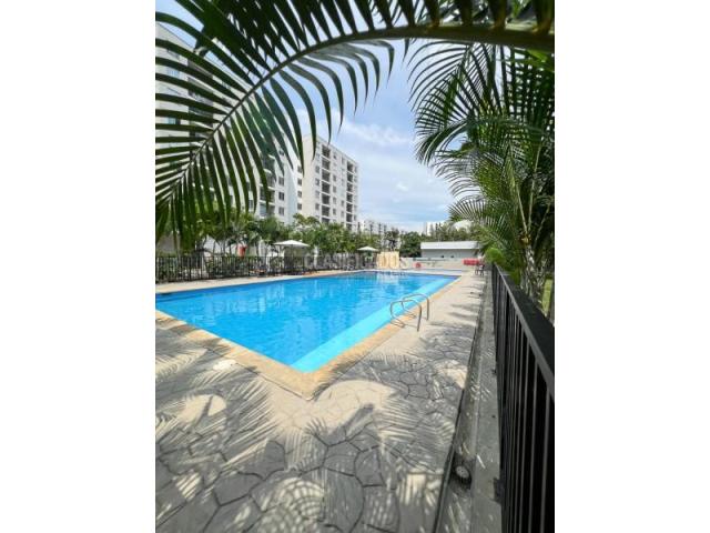 Vive con confort y exclusividad en este apartamento de 60m2 casi nuevo con hermosa vista, excelente iluminación natural sin sol directo y balcón amplio ideal para el descanso. Cuenta con hall de entrada, baño social, salón comedor con acceso al balcón, cocina tipo americano, zona de ropas independiente. Dispone de 2 habitaciones: la principal con vestier, baño privado y con ducha; una habitación auxiliar, espacio para estudio o sala de TV y baño completo para estas. Parqueadero comunitario El conjunto ofrece zonas sociales confortables: lobby con recepción, seguridad privada 24/7, gimnasio dotado, piscina para adultos, piscina infantil, parque infantil, salón social y Zona Pet para tu mascota. Un apartamento moderno, funcional y elegante.