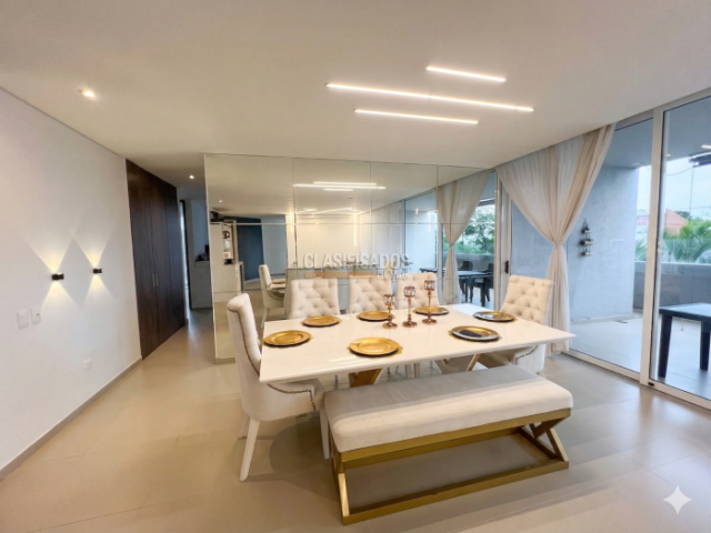 Apartamento de lujo en Pance Dacota, con diseño moderno y amplios espacios. Cuenta con 3 habitaciones, todas con aire acondicionado y baño; la principal con vestier y balcón. Las habitaciones auxiliares tienen clóset, blackout/cortinas, TV y nocheros; una de ellas con salida a patio interno. Al ingresar encontrarás baño social y una acogedora zona de estar con TV y sofá. Dispone de 2 salas, una principal amplia con acabados de lujo e iluminación LED en pared, y comedor independiente. Cocina estilo americano equipada con estufa, horno, microondas, lavavajillas y nevecon, con elegantes gabinetes. Junto a esta se ubica la zona de ropas con lavadora, secadora y patio, además de cuarto de servicio con baño. Cuenta con 3 parqueaderos privados y depósito en sótano. Incluye cava de vinos y amplio balcón con vista ideal para BBQ. Unidad con piscina, parque y gimnasio.