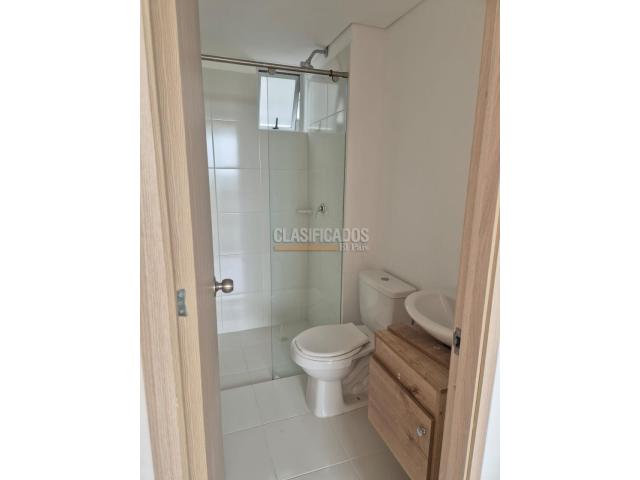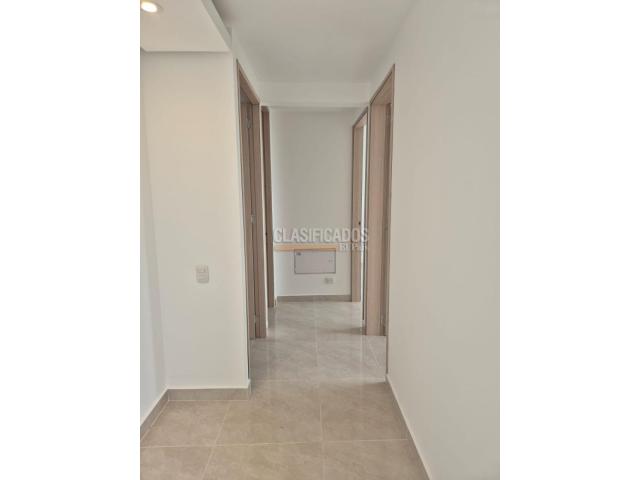 Se alquila apartamento para estrenar, 6 piso ,62 m2 distribuidos así: 3 habitaciones, 2 con closet, 2 baños, sala comedor, balcón con hermosa vista al exterior, cocina, zona de lavado, garaje comunitario. El alquiler incluye la cuota de administración. El conjunto tiene piscina, quiosco, cancha múltiple, portería las 24 horas.