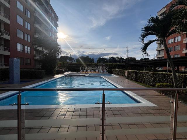 Arriendo apartamento en tercer piso con ascensor desde el sótano, en San Joaquín, Sur, Cali, cuenta con sala comedor, balcón con linda vista, sala de tv , cocina integral, zona de oficios, cuarto principal con walking closet balcón y baño, 2 cuartos con closet comparten un baño y tiene 1 parqueadero bajo techo. La unidad cuenta con piscina para adultos y niños, turco, cancha múltiple, juegos infantiles, salón social, hermosos jardines, parqueadero de visitantes. Excelentes vías de acceso y buen transporte publico, cerca a parque del ingenio, centros comerciales, clínica Valle del Lili (5 minutos), colegios y universidades.