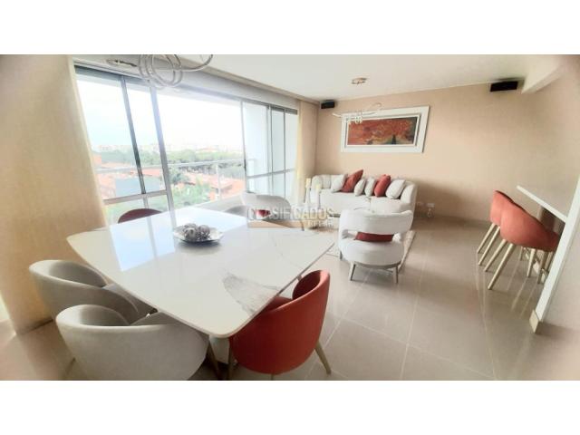 Se alquila amoblado (SIN AMOBLAR $3.800.000) hermoso apartamento en estratégica zona de Valle del Lili, iluminado, con vista excepcional, no le da el sol de tarde, sonido BOSÉ, totalmente equipado, muebles y lámparas de diseñador, cortinas eléctricas en sala y habitación principal, habitación principal con vestier, calentador de agua a gas, aire acondicionado en habitación principal, 3 habitaciones y confortable Sofá en sala de TV. Cocina con todos los electrodomésticos necesarios para su comodidad, 2 amplios depósitos y parqueadero doble lineal, El conjunto cuenta 2 ascensores amplios por piso, turco, piscinas para adultos y niños, completo GYM, rampa para discapacitados, solarium, senderos para caminar con hermosos jardines, zona BBQ, CCTV y vigilancia 7/24. Este exclusivo edificio esta a poca distancia de Antigua 14 de Valle del LILI, Jardin plaza, vía Panamericana, colegios, universidades, D1, ARA y mucho mas. Código interno: A125424