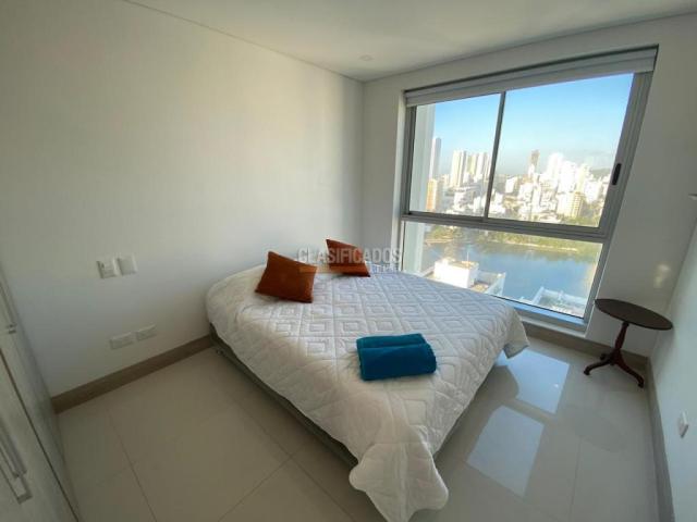 COD:124856:Apartamento en arriendo en Palmetto Sunset cartagen AMOBLADO ubicado en el exclusivo sector El Laguito – Cartagena de Indias, a solo 600 metros del Hilton Cartagena y a pocos pasos de la playa. Cuenta con 106 m² muy bien distribuidos, 3 habitaciones amplias, 2 baños completos, sala-comedor con excelente iluminación natural, balcón con espectacular vista al mar y atardeceres, cocina integral, zona de labores, aire acondicionado y parqueadero. El edificio ofrece completas zonas sociales: piscina frente al mar y piscina en terraza con vista panorámica, jacuzzi, turco, gimnasio dotado, salón social, sports bar, zona zen/yoga, ascensores de alta velocidad y varios niveles de parqueadero privado, todo con seguridad y acceso controlado. Su ubicación es privilegiada, cerca de restaurantes, supermercados, comercio, transporte público y a aproximadamente 20 minutos del Aeropuerto Internacional Rafael Núñez. Ideal para vivir con comodidad frente al mar o para arriendo de alta demanda por su exclusividad y ubicación estratégica. LLAMA YA: 3186560724 Código interno: A124856