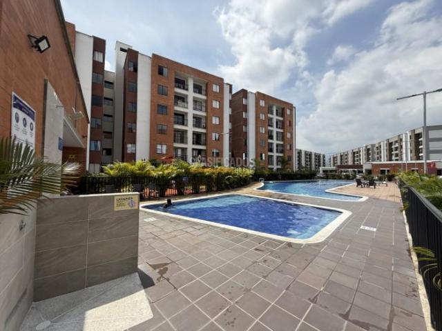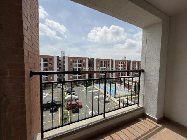 Alquilo moderno y cómodo apartamento con acabados de lujo, ubicado en quinto piso con vista panorámica. Consta de sala-comedor que conecta con el balcón, cocina integral con gas, zona de oficios, habitacion auxiliar con closet, baño de alcobas, habitación principal, con closet y baño, espacio de estudio. El Conjunto cuenta con piscina niños y adultos, salón social y parqueadero propio en plataforma. Agenda tu cita.