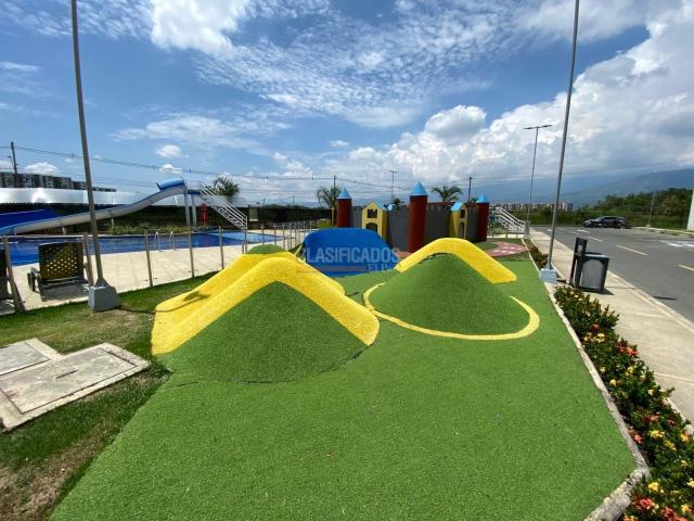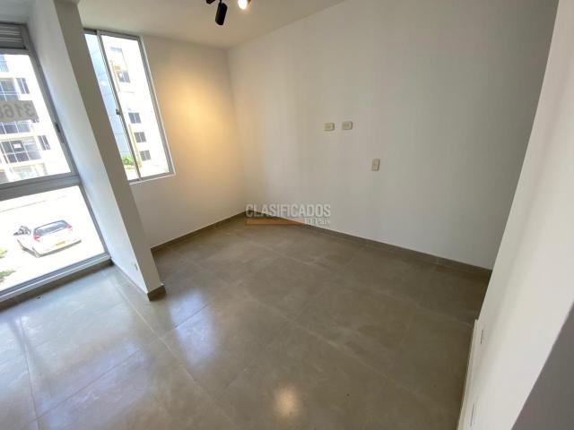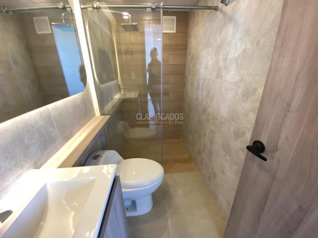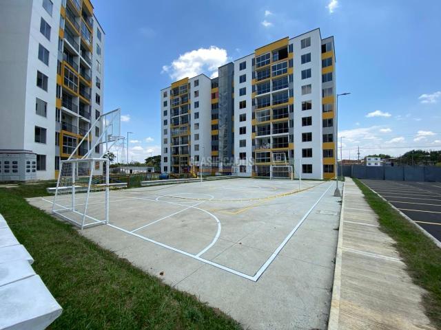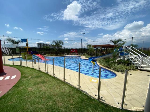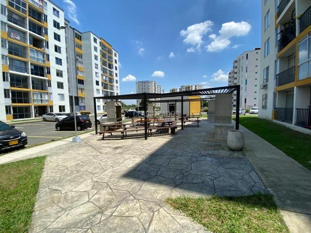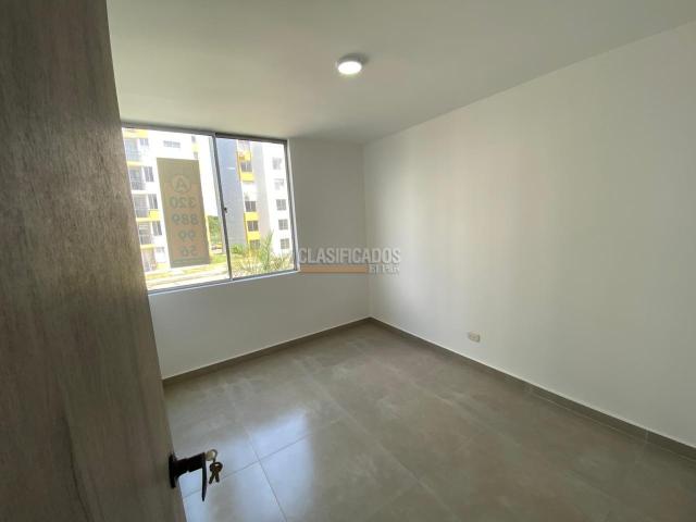 Se alquila apartamento para estrenar, con excelentes acabados y diseño moderno. Cuenta con 2 habitaciones, una de ellas con clóset y baño privado, además de baño social. Dispone de cocina integral, zona de oficios independiente, amplia sala-comedor y hall de TV. Ubicado en segundo piso con ascensor, incluye parqueadero propio. La unidad residencial ofrece completas zonas comunes: piscina con toboganes, tres zonas BBQ, amplias zonas verdes, cancha de fútbol, sala de cine y salón social.
