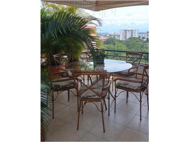 Vendo bonito Penthouse Duplex Piso 8 condominio la Flora Área 188 metros Terraza primer piso 20.58 metros Terraza segundo piso 7.20 metros 92.32 M2 construido 1nivel. 68.83 M2 construidos 2 nivel. Planta baja: Baño social, sala , comedor,estudio, terraza, cocina integral cerrada, zona de oficios, alcoba de servicio con baño. Planta alta: Habitación principal con baño y vestier, 2 habitaciones con baño cada una, estudio, balcón, terraza. Puerta blindada , 3 garajes paralelos, 3 cuartos útiles. Un depósito en el piso del apartamento. Áreas comunes: Piscina adultos , piscina niños,gimnasio,2 salones sociales, sauna. Valor: $ 790.000 millones negociables Administración $1.111.000 mil pesos.