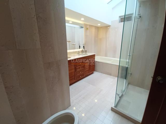EXCLUSIVO Apartamento Dúplex Penthouse en Arboleda. Zona / Sector: Oeste Estrato: 6 Año de construcción: 29 años Ascensores: 2 Área construida: 480 m² Distribución: • Habitaciones: 4 (posibilidad de convertir el hall de TV en una quinta habitación) • Baños: 6, todos con baño privado • Balcón • Clósets • Estudio Parqueaderos: 4 paralelos Depósitos: 2, ubicados dentro del apartamento Características del edificio: • Torres: 1 • Pisos por torre: 8 • Apartamentos por piso: 1 (un apartamento por nivel) • Planta eléctrica: cobertura total Zonas comunes: • Salón social • Piscina climatizada • Gimnasio Información financiera: • Avalúo catastral: $1.635.427.000 • Impuesto predial: $25 millones anuales • Valor administración: $4.670.000 • Cuotas extraordinarias: no • Estado jurídico: libre de deuda CANON: $18 MILLONES INC ADMON (se escuchan ofertas)
