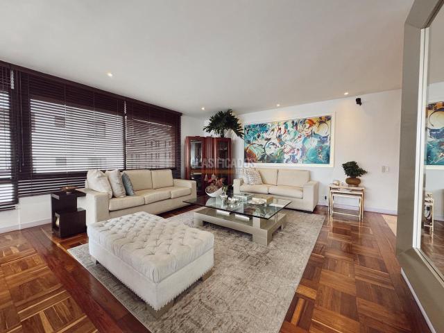 Apartamento en Venta Normandia Oeste de Cali, este espectacular y exclusivo apartamento de 256 mt, con 3 habitaciones todas con baño, sala comedor, comedor formal, baño social, alcoba de servicio con baño, sala de television, balcon, 3 parqueaderos, deposito, 4to piso con ascensor, edificio con vigilancia 7x24, piscina y salón social.