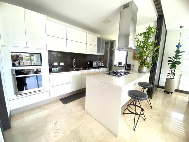 Espectacular apartamento en piso intermedio, en el mejor conjunto de Cristales, sus 221 M2 se distribuyen en una amplia sala y comedor, balcón integrado, sala de T.V, cocina tipo americana, zona de ropas, baño social, alcoba y baño de servicio, todas las habitaciones con baño la principal y una de las auxiliares cuentan con vestier, super iluminado y con ventilación cruzada.. Dispone de 3 parqueaderos, uno sencillo y uno doble lineal y, amplio depósito. Edificio con zonas sociales, sala coworking, sala de juntas, gymboree, piscina climatizada de adultos, piscina de niños, sauna, turco, salón social, sala de entrenimiento, gimnasio y juegos infantiles