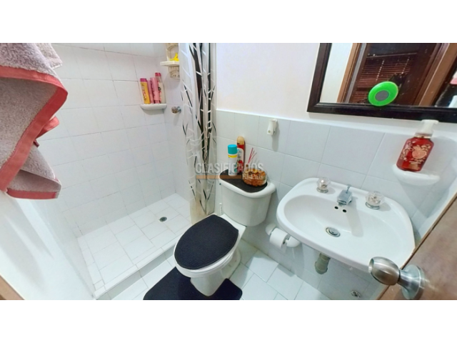 Apartamento en venta de 66m2, con vista interior, ubicado en un 1er piso, acceso por escaleras, parqueadero propio cubierto. Consta de 3 habitaciones, 2 baños, sala comedor, cocina integral, balcón y zona de lavandería. Tiene piso cerámico en todas sus zonas. El conjunto cuenta con zona para niños, zonas verdes, salón social, piscina y vigilancia privada las 24 horas. Cerca a almacenes de cadena D1 y Ara; cerca del colegio Santa Isabel de Hungría; cerca a estación del MIO (Simón Bolívar); Vías de acceso por la cra 69 y calle 45.