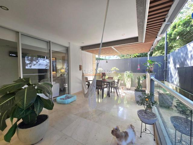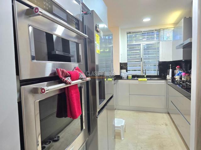Espectacular apto 1er piso totalmente remodelado con acabados de lujo, pisos en mármol, cocina, madera y baños, ampliaciones de vestieres Area 160 mt2 Sala-comedor 3 alcobas todas con baño y vestier, ( vestier principal y una alcoba auxiliar remodelados) Baño social Cuarto del servicio con baño Zona de ropas ●Parqueadero para dos vehículos Depósito