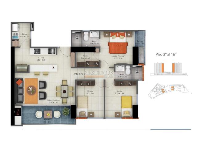 - No. de Alcobas: 3