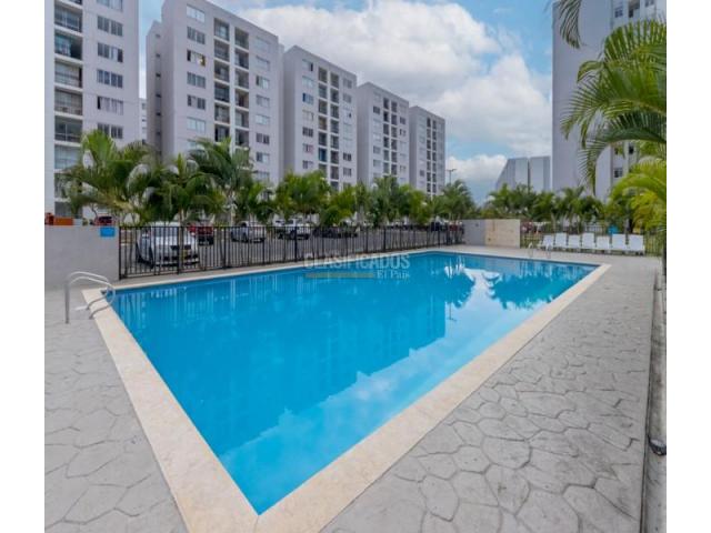 Cali, Hacienda Kachipay. Conjunto Dalia. Vendo apartamento en segundo piso con ascensor. Ubicación con vista hacia parque exterior. Consta de balcón, cocina integral con extractor de olores, horno y buen número de cajones y gabinetes para guardar elementos de cocina. La zona de oficios está separada de la cocina por una puerta corrediza y está totalmente enchapada. El apartamento tiene dos habitaciones, estudio y dos baños. La habitación auxiliar tiene closet y la principal tiene vestier. El conjunto tiene piscina, salón social, parque de juegos infantiles y parque para mascotas. El sector es muy tranquilo y se encuebtra ubicado a pocos minutos de centros comerciales y las zonas de universidades y colegios.
