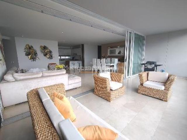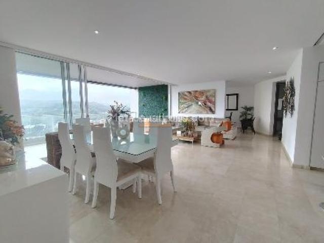 Exclusivo apartamento con vista a la naturaleza, 200 m2, consta de amplia sala comedor, balcón con espacio para sala exterior, cocina integral abierta, zona de ropas y cuarto del servicio, estudio, hall de tv, 3 cuartos con baño, el principal con vestier, aire acondicionado en todos los cuartos, 2 parqueaderos paralelos, piscina, salón social, zona húmeda, gimnasio, cerca a centros comerciales y colegios/universidades.