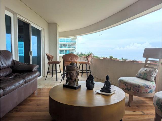 En venta este espectacular apartamento en el sector de la Boquilla con vista directa al mar, ideal tanto para vivienda como para inversión turística. Características del apartamento: 3 amplias habitaciones con excelente iluminación natural, 3 baños modernos y funcionales, habitacion y baño de servicio, sala y comedor con diseño abierto, cocina estilo americano, zona de labores independiente, balcón con vista panorámica al mar Caribe, 2 parqueaderos en sotano. Amenidades del edificio: Piscina infinita con vista al mar, gimnasio totalmente dotado, sauna/turco, zona bbq, seguridad 24/7 Código interno: V17114