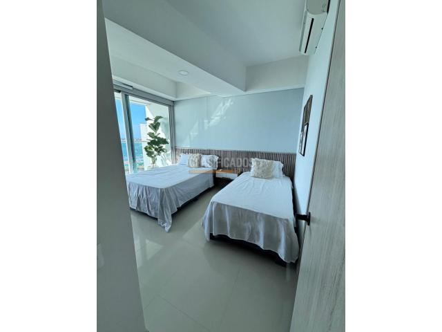 Venta Apto turistico en Bocagrande Cartagena. Piso 14; 88 mt2 construidos, con vista a la playa de bocagrande. Cuenta con 2 alcobas con clóset; sala comedor ; cocina integral; baño; zona de oficios y balcón amplio con vista a la playa. Se vende amoblado, cuenta con aire acondicionado en sala y alcoba principal. El edificio está ubicado sobre la carrera 1, es 1ra línea de playa, cuenta con 3 ascensores ,lobby moderno, 3 piscinas, jacuzzi, gimnasio y turco. El apto es de uso Turistico, airbnb, booking. Precio Negociable. Código interno: V17312