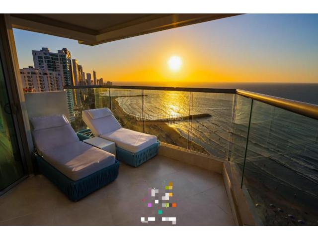 Se Vende Exclusivo Apartamento Inspirado en la Marca Louis Vuitton, Cuenta con una Hermosa vista directa al Mar el edificio está ubicado en el Sector de Bocagrande uno de los sectores mas turísticos de la Ciudad. El apartamento consta de 2 Habitaciones la Principal con baño privado y Un Gran Ventanal con Vista al Mar y la playa, cuenta con un Balcon Amplio con dos sillas Solarium vista panorámica, Cocina Integral Equipad con Barra, Sala-Comedor, Zona de Labores, Un Condominio Luxury con salida a la playa, rodeado de la Zona comercial y turística de Cartagena. ofrece amplias Amenidades, Salón social, zona BBQ, Piscinas en el Ultimo Piso, jacuzzi, Restaurante, gimnasio, turco, lobby Luxury. Código interno: 17506