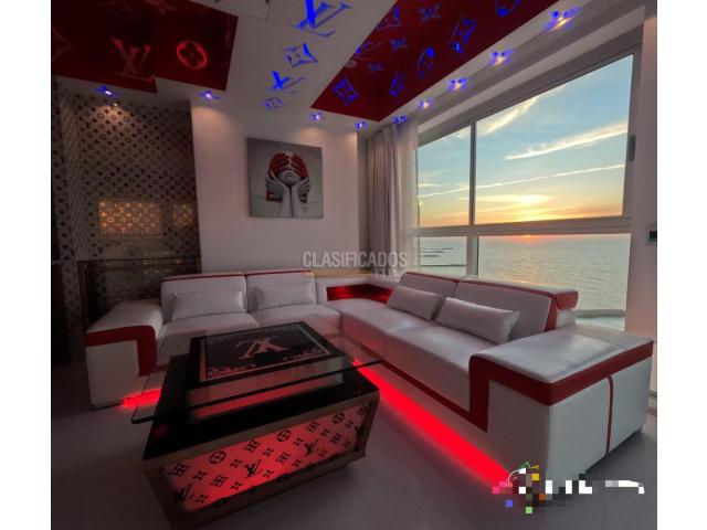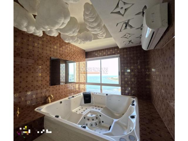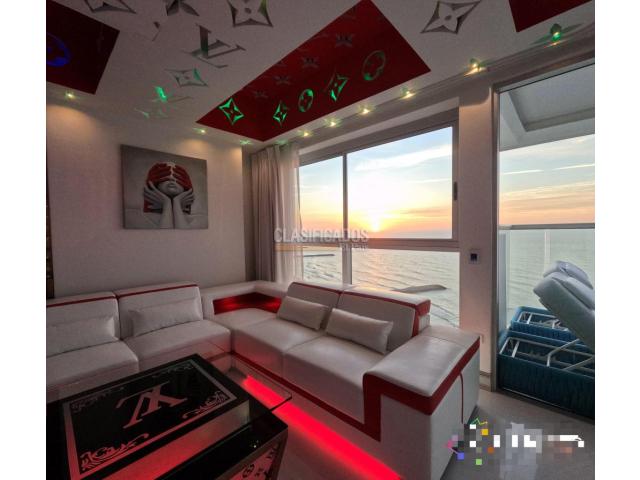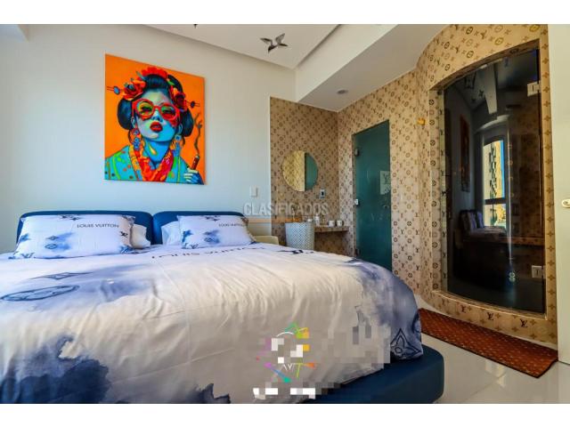 Se Vende Exclusivo Apartamento Inspirado en la Marca Louis Vuitton, Cuenta con una Hermosa vista directa al Mar el edificio está ubicado en el Sector de Bocagrande uno de los sectores mas turísticos de la Ciudad. El apartamento consta de 2 Habitaciones la Principal con baño privado y Un Gran Ventanal con Vista al Mar y la playa, cuenta con un Balcon Amplio con dos sillas Solarium vista panorámica, Cocina Integral Equipad con Barra, Sala-Comedor, Zona de Labores, Un Condominio Luxury con salida a la playa, rodeado de la Zona comercial y turística de Cartagena. ofrece amplias Amenidades, Salón social, zona BBQ, Piscinas en el Ultimo Piso, jacuzzi, Restaurante, gimnasio, turco, lobby Luxury. Código interno: V17506