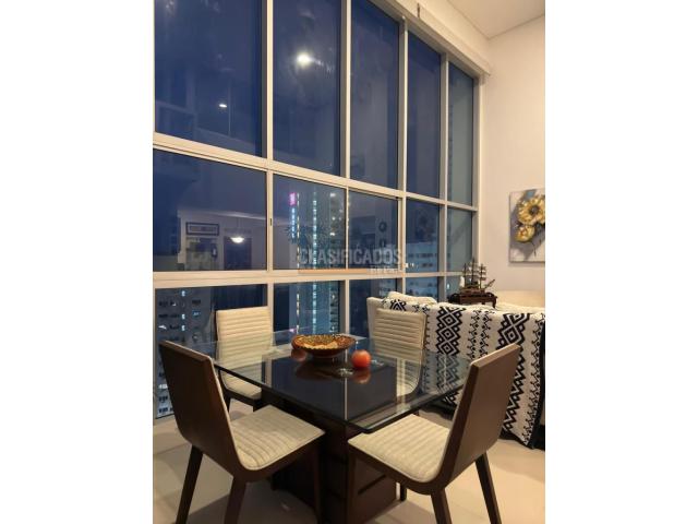 hermoso apartamento dúplex de 147 m² ofrece un ambiente amplio, iluminado y con un diseño moderno de doble altura. Al ingresar se encuentran dos accesos: uno que conduce a un apartaestudio independiente, ideal para renta, y otro que da entrada al apartamento principal. En el primer piso se encuentra una sala comedor espaciosa con grandes ventanales que permiten una excelente entrada de luz natural, junto a una cocina integral y la zona de ropas. En este mismo nivel hay una habitación cómoda con baño completo. Al subir al segundo piso está la habitación principal, que cuenta con un gran ventanal, baño completo y una vista privilegiada hacia el mar y el Centro Histórico. También en este piso hay un espacio adicional con baño completo y una pequeña cocineta, actualmente utilizado como estudio o área de trabajo, que puede funcionar como oficina o ambiente independiente. El apartamento se destaca por su amplitud, su iluminación y su distribución funcional, además de ofrecer hermosas vistas y posibilidades de uso flexible. Código interno: V17600