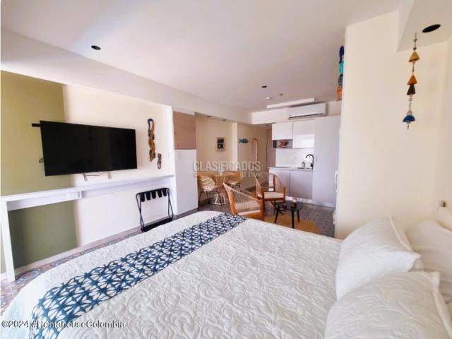 Apartamento en Cartagena (Bolivar) RAH CO: 26-346 - Excelente inversion en el barrio Crespo: Apartamento tipo suite de 43 m², ideal para renta turística. Ofrece cocina equipada y zona de ropas, cama Queen, balcón con vistas a la piscina, la ciénaga y el aeropuerto, además de baño con agua caliente y acabados de lujo. Ubicado a pasos del Paseo Marítimo y las playas de Crespo, con amenidades de hotel que incluyen piscinas, spa salón de reuniones, vigilancia 24 horas y un elegante lobby. ¡Disfruta del confort y la exclusividad en cada detalle! - 26-346... - Código 9825528