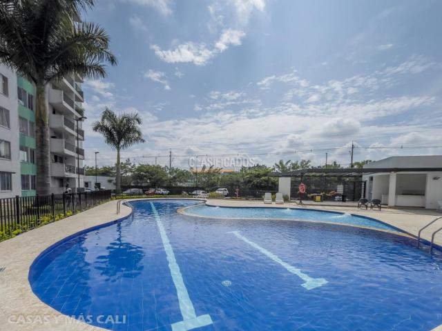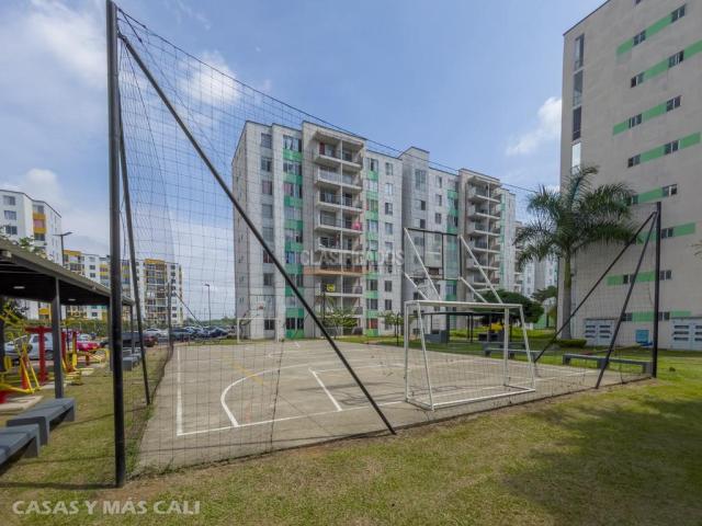 Se vende Apto de 56 m2 construidos con excelente vista a zona verde en Jamundí, sobre la Av Sachamate, muy cerca a Alfaguara. A solo 20 min de Cali este apto cuenta con 2 habitaciones con closet, la principal con closet y baño privado y 1 habitacion auxiliar con closet, baño social, sala comedor, estudio o sala de TV (opción 3ra alcoba), cocona y zona de ropas. El conjunto cuenta con cancha múltiple, piscina de adultos y niños, juegos infantiles y amplias zonas verdes. El apto tiene deuda, Agenda tu cita. Código interno: V11481
