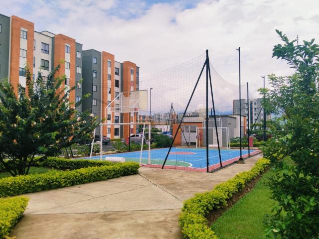 Jamundí. Venta o Alquiler de apartamento, sexto piso con ascensor en la unidad residencial Pinares, Parque Natura, Alfaguara. Zona de alta valorización. Cerca al centro comercial Alfaguara, supermercados y a la avenida Cañas Gordas, lo cual te permite estar a solo a quince minutos de Cali, universidades y colegios de la zona. Características: Completamente terminado. Muy buena distribución. Por su ubicación, tiene vista al interior. Dos habitaciones con closet. Un baño completo. Cocina semi integral sencilla. Sala comedor. Parqueadero privado. La unidad cuenta con vigilancia permanente, piscina para adultos y niños, juegos infantiles, salón social y zona Bbqq. Cancha múltiple. Canon de Alquiler: $900.000, incluida la administración del conjunto. Si buscas un hogar que ofrezca seguridad, comodidad y privacidad en una ubicación inmejorable...Este apartamento es para ti