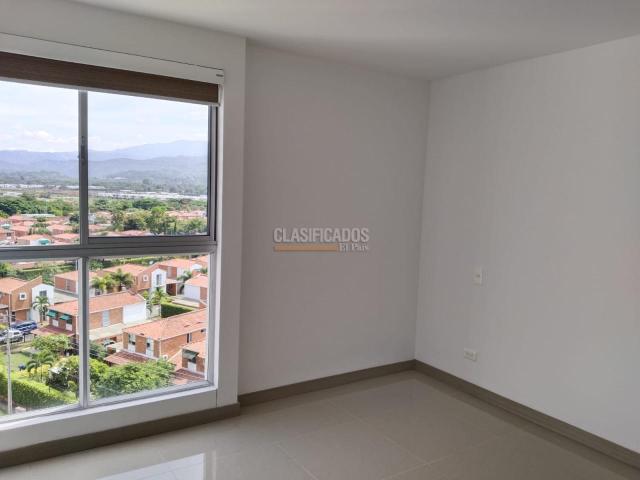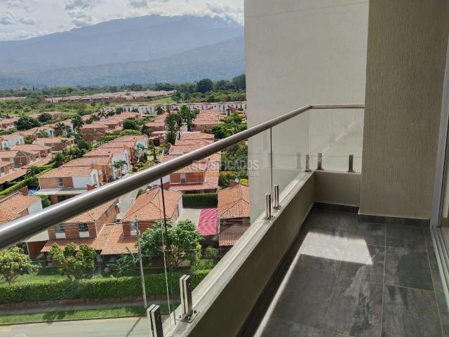 Jamundí. Venta o alquiler de apartamento en Alfaguara. Piso noveno, no último. Con hermosa vista externa a los farallones. Iluminado y fresco. Consta de sala comedor, amplio balcón, sala de tv, cocina integral, zona de oficios independiente y baño social. Tres habitaciones, principal con baño y vestier. Baño de entre alcobas. Cuenta con depósito y parqueadero doble paralelo techado. La unidad dispone de piscinas para adultos y niños, salón social, turco y Gym. Se entrega con vidrios de puerta ventana y dos ventanas mas con pelicula protectora de rayos infrarrojos y ultravioletas (que quema la piel y decolora los objetos). y anjeos en las ventanas de las habitaciones. Precio de alquiler: $ 1.850.000.La Admón esta incluida dentro del canon.
