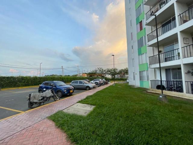Venta de apartamento en Jamundí con un área de 57 M2 y ubicado en un piso 5: Este apartamento cuenta con las siguientes características: -Ascensor externo -Parqueadero propio -2 Habitaciones -2 Baños -1 estudio -Balcón -Cocina Integral -Zona de servicios a parte de la cocina El conjunto cuenta con comodidades como un salón social, zona de juegos para niños con cancha múltiple, zona BBQ y piscina.