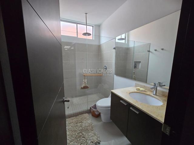 Se Arrienda moderna casa de dos plantas en Conjunto Campestre con excelentes zonas comunes y ubicación en el sector de Pance. Sala comedor Estudio Cocina americana 3 alcobas con baño, vistieres principal con amplio vestier y balcón Sala de TV Alcoba del servicio con baño Estadero Zona Verde Zona de oficios Depósito Parqueadero : 3 vehículos