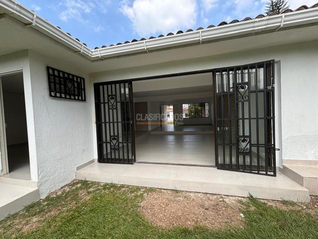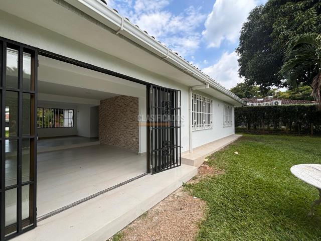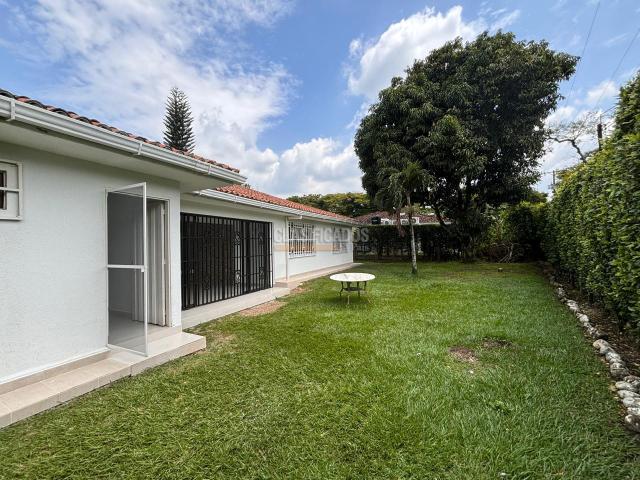 Arriendo casa de un piso, remodelada en Pance, sector Aguas Calientes, Sur, Cali, en condominio de tres casas, casas abiertas estilo americano, cuenta con sala, comedor, amplia cocina abierta tipo americano , zona de oficios, cuarto de servicio con baño, cuarto principal con vestier, baño y AA, cuarto con closet de pared a pared, baño y AA, otro cuarto con closet y AA, el baño con ducha es el mismo social, mueble empotrado en hall para estudio, zona verde amplia con cerramiento para la mascota, terraza con pérgola, funciona para sala comedor auxiliar, los baños están remodelados, dos parqueaderos internos con puerta eléctrica y parqueadero externo para 4 carros, la unidad cuenta con jacuzzi, piscina, turco , baños, hermosas zonas verdes y arborizadas, excelente vecindad, muy tranquilo, fresco y muy privado, La puerta de entrada con control, incluye admon.