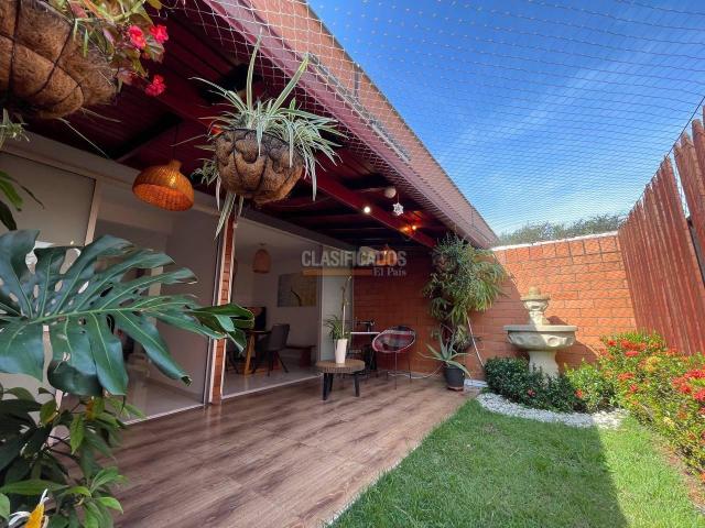 Se alquila hermosa casa de dos niveles en el exclusivo conjunto residencial Sol de la Llanura, en el tranquilo sector de Cinco Soles, Jamundí. Esta propiedad de estrato 5, con solo cuatro años de antigüedad, ofrece un entorno ideal para quienes buscan comodidad y accesibilidad, con excelente conexión a la Vía Panamericana y a la ciudad de Cali. En su primer nivel, la casa te recibe con una amplia sala-comedor, que destaca por su iluminación natural y acabados modernos. La cocina integral en forma de "L" está equipada con mesón en mármol, estufa, horno empotrado y extractor, además de una zona de oficios independiente. El baño social y una generosa habitación principal con clóset, vestier y baño privado con doble lavamanos complementan este nivel. El segundo piso alberga un versátil espacio de estudio, dos acogedoras habitaciones auxiliares con clóset y aire acondicionado, así como una segunda habitación principal con doble clóset y baño privado. La casa también cuenta con iluminación