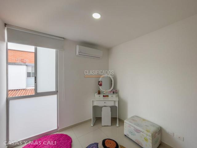 Se alquila casa en condominio en Jamundí, 108 m2 construidos. Tiene 2 niveles, en el 1er piso se encuentra la sala-comedor, cocina integral en L, baño social, sala de TV, estadero y zona verde. En el 2do nivel se encuentra el área privada donde dispondrás de hall de alcobas, 1 alcoba principal con baño privado y closet, y 2 habitaciones auxiliares con closet y baño social. La casa tiene parqueadero lineal cubierto para 2 vehículos. La casa tiene con aire acondicionado y blackouts en las 3 alcobas. El condominio cuenta con piscina de adultos y niños, cancha de futbol, salón social, y zonas verdes. Se requiere tomador y codeudor, ambos deben tener ingresos de al menos el doble del canon y no tener reportes en datacrédito. Agenda tu cita Código interno: A14390