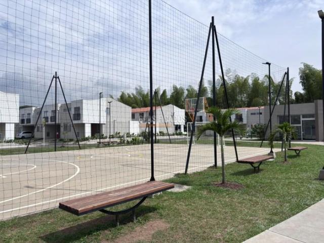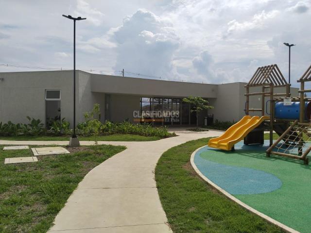 Jamundí. Alquilo hermosa casa esquinera para estrenar en Ciudad Country. Unidad Residencial Tangara. Completamente terminada. Consta de sala comedor, sala de Tv o estudio, baño social completo, cocina integral abierta, zona de oficios y patio patio amplio con terraza techada. En el segundo nivel cuenta con tres alcobas, principal con baño, vestier y A.A. Baño auxiliar. Parqueadero para dos vehiculos. Se entrega con persianas. La unidad cuenta con zona social completa: vigilancia permanente, salón social, Gym, turco, área de juegos infantiles, piscina para adultos y niños. Cancha múltiple. zona de juegos para macotas. Su ubicación es privilegiada, cerca al Mall y a la avenida Panamericana; a 15 minutos de Cali, cerca Colegios, Universidades, a la clínica Valle del Lili y Jardín Plaza.