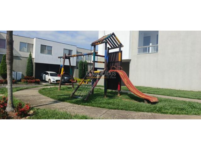 web 125646 casa ubicada en cuidad country en la unidad Alondra casa que cuenta con parqueadero semi cubierto cuanta con cocina tipo americana con gabinetes horno y extractor de olores, zona de lavado, sala comedor, baño social, patio cubierto y en 2 piso cuenta con pasa manos en vidrio y en segundo piso tiene 3 habitaciones cada una con closet un baño social y en la alcoba principal cuanta con baño privado y Vestier con una pequeña terraza para iluminación natural, la unidad cuenta con piscina gimnasio zona para niños vigilancia 24/7 casa cómoda y cerca a la unidad ahí un supermercado no pierdas esta oportunidad para vivir WED 125646 Código interno: A125646