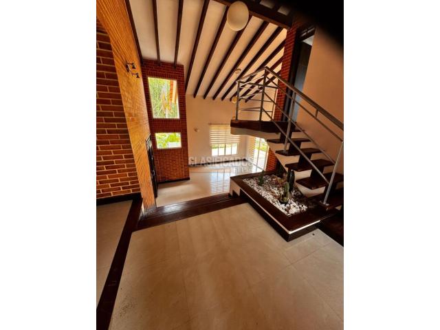 Código: 122871 ARRIENDO ESPECTACULAR CASA CAMPESTRE EN VEREDA EL TIGRE, La casa consta de 4 habitaciones mas habitacion de servicio.todas con closeth, 6 baños, se entrega encortinada , cocina integral, habitación del servicio con baño privado, zona de ropas, parqueadero para 6 vehículos, 1 piscina privada, circuito cerrado de seguridad, amplias zonas verdes con arboles frutales, esta propiedad ofrece comodidad y elegancia en cada rincón. Desde sus amplias habitaciones hasta sus modernos baños, cada detalle ha sido cuidadosamente pensado para brindar un ambiente acogedor y sofisticado. Con una distribución inteligente y una arquitectura impecable, esta casa es el lugar perfecto para disfrutar de la vida en todo su esplendor y comodidad, ubicación estratégica en el sector de cerritos a 10 min del aeropuerto, cerca al hospital de 4 nivel. ¡Bienvenido a tu nuevo hogar! mayores informes al 3186701905 Código interno: 122871