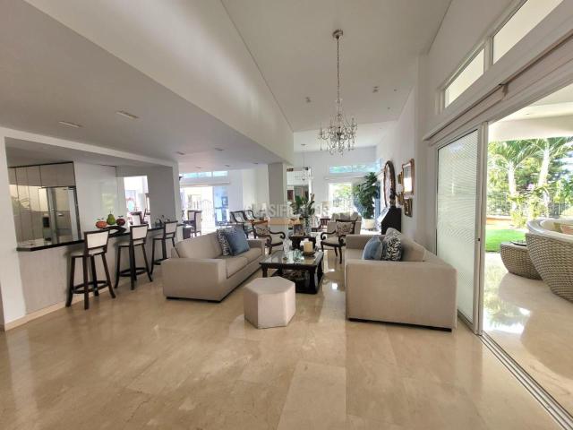 Hermosa casa totalmente moderna con amplios espacios y excelentes acabadoa, ubicada en Ciudad Jardin Primer piso Cocina americana Comedor con vista al jardín Dos salas principales Baño social Amplia terraza con vista a los jardines y zona verde Habitación auxiliar de empleada con baño Zona de ropas cubierta Amplia Bodega 3 parqueaderos cubiertos y 3 o 4 auxiliares descubiertos. Segundo piso: 4 habitaciones con baño privado Principal con amplio vestier y baño, salida a sala terraza con vista a jardines y zona verde Jacuzzi y turco Zona verde con jardín Amplia sala de tv Estudio con vista a jardines