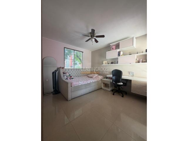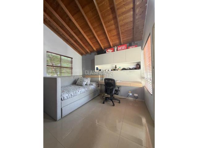 CASA ESQUINERA EN CONDOMINIO DE CIUDAD JARDÍN Excelente ubicación, iluminada, cerca a colegios, universidades, centros comerciales, supermercados y sistema de transporte. Área: 145 m2 Consta de: 3 habitaciones con baño privado cada una y de muy buen espacio 1 piso: Sala, comedor, jardín pequeño, baño de visitas, cocina, zona d ropas y cuarto del servicio con baño 2 piso: Hab principal con baño y Vestier Hab auxiliar con baño propio Sala de TV 3 piso: Habitación auxiliar con baño propio Oficina o estudio Terraza Zona social: Piscina, zona bbq, juegos para niños, cancha de squash, cancha múltiple, gimnasio muy bn dotado, sauna, salón social, portería tipo lobby Administración: 700.000 PRECIO: $570 MILLONES NEGOCIABLES