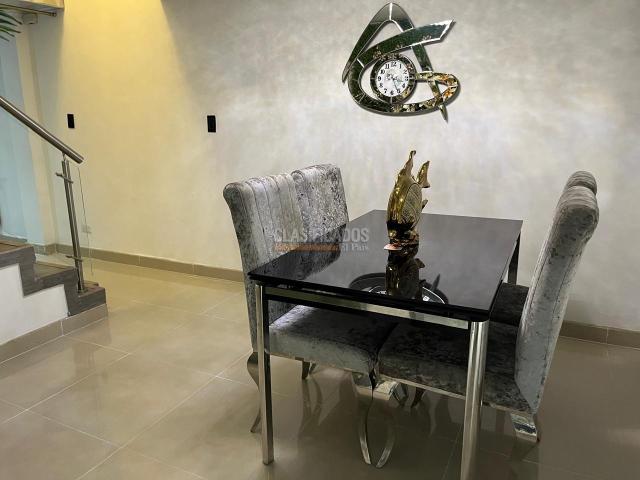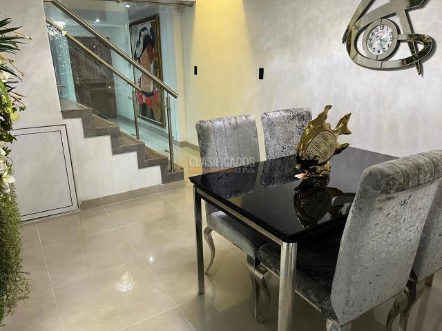 Venta casa ubicada en Nueva Tequendama con un área de 280 M2 construidos en dos niveles, con una arquitectura moderna y elegante, casa totalmente climatizada (4 aires acondicionados) el primer nivel cuenta con una amplia y elegante sala, baño social, comedor, una habitación con baño , cocina integral con mesón en mármol y extractor de olores, zona de oficios y lavandería , cuarto de servicio. ingreso al segundo nivel por escaleras construidas en vidrio templado y pasamanos en acero inoxidable, donde encontramos dos habitaciones con closet, la principal con baño, baño de alcobas con vidrio templado y hermosos acabados , sala de estar o estudio, cuenta con una sala de Cine espectacular con un sistema de Insonorización, calentador de agua para toda la casa, también con un sistema de iluminación inteligente (Dimmer) cortinas a control remeto, Garaje con reja eléctrica con dos controles, y sistema de luces Led con temporizador para la parte exterior de la casa.